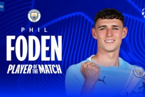 此役福登梅开二度,帮助曼城取胜,他当选欧冠官方本场比赛最佳球员。