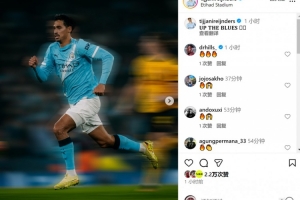 赖因德斯社媒晒出比赛照片,庆祝球队取胜,配文:“加油蓝月。”