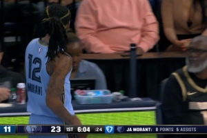 很险!莫兰特防守被吹犯规&个人累计4犯 灰熊挑战成功取消犯规
