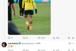 赛后苏亚雷斯评论了纳什维尔11月6日发的帖子。当时纳什维尔赢下比赛后,发了一个表情👋🏼