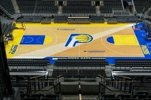 体育资讯11月15日讯 步行者官方晒出了球队新赛季城市版的球场地板涂装。