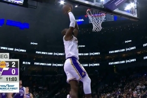 越老越妖!詹姆斯反击击地妙传里夫斯上篮得分